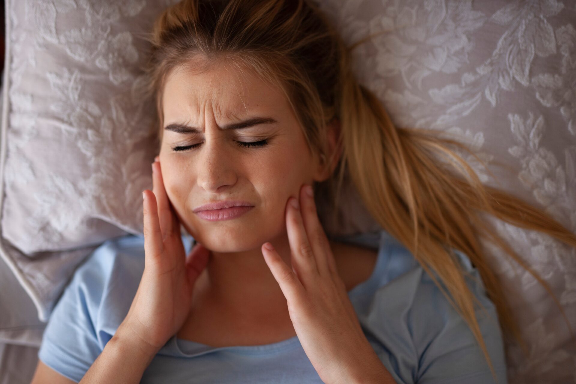 朝、目覚めたときに顎が痛みを感じたり、こめかみに鈍い痛みを感じたりすることはありませんか?