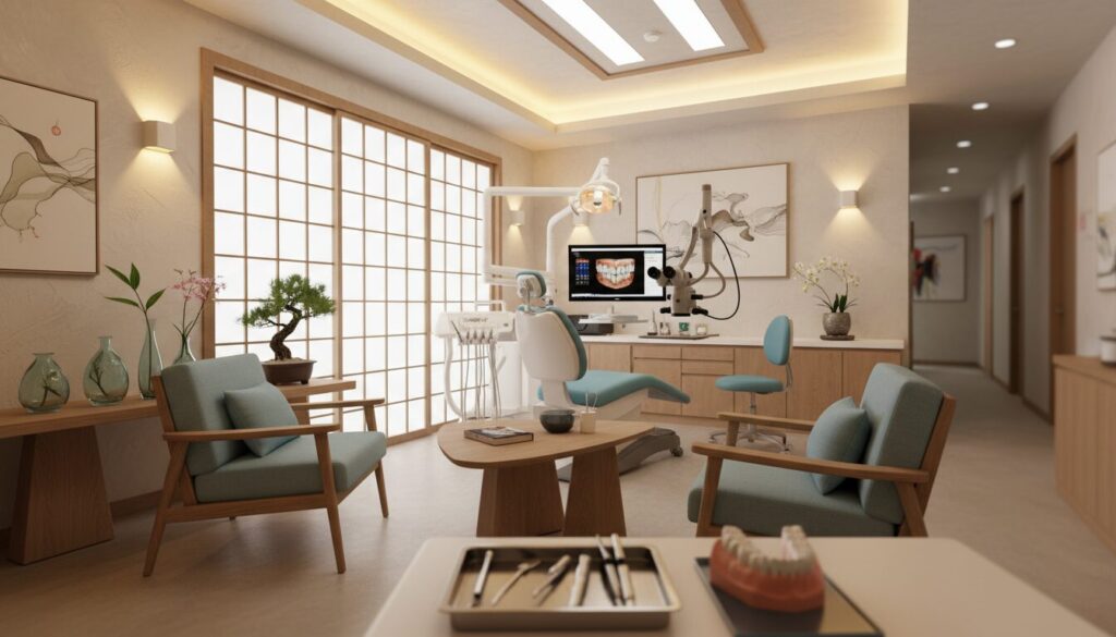 インプラント治療の流れを示す歯科診療室の様子インプラント治療の流れと各段階の期間